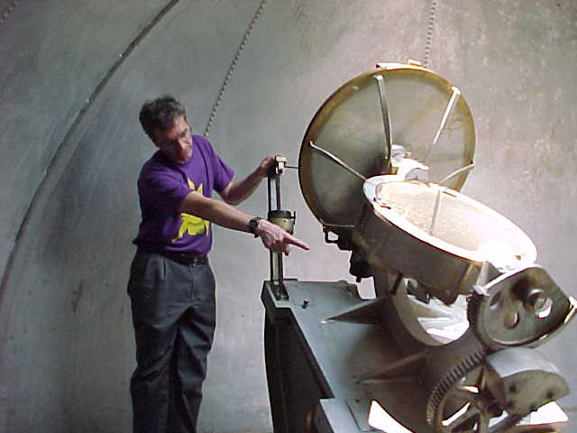 ![]() The copper colored cylinder is an aluminizing chamber. This device was was used to apply reflective coating to observatory mirrors. |